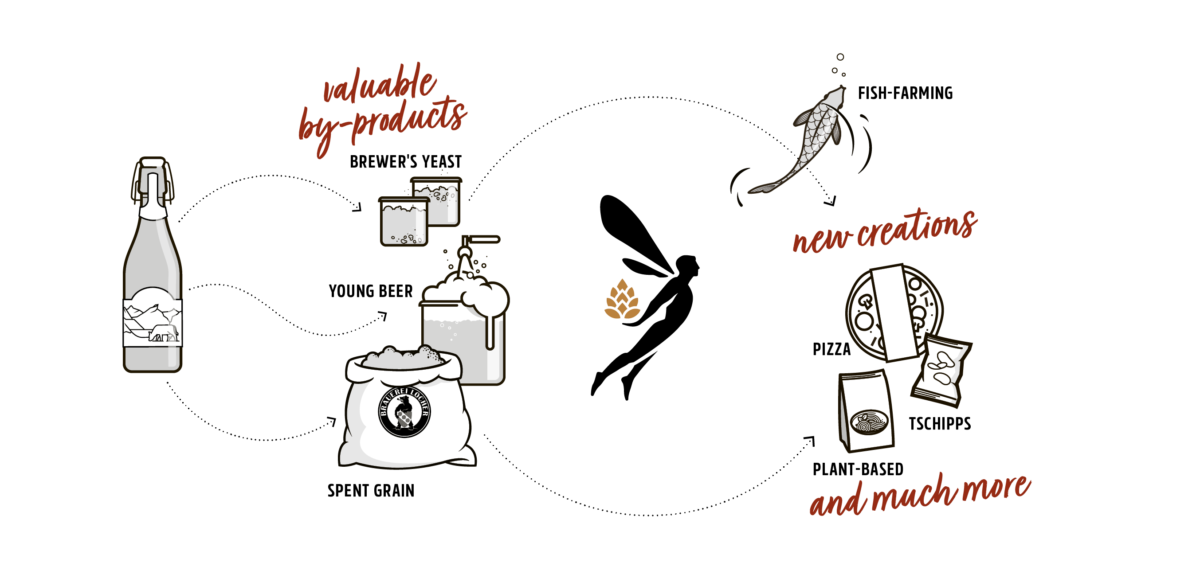 brewbee sources its main ingredients from Brauerei Locher in Appenzell. When the popular Quöllfrisch beer leaves the brewery, lots of valuable and nutritious by-products are left behind, including aromatic spent grain, vibrant brewer’s yeast, low-alcohol beer and intense beer wort. We carefully collect them and follow trusted processes to use them up, ultimately transforming them into our sensational brewbee products. Sustainable, distinctive and completely free from alcohol!